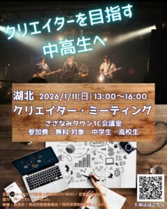 この度、2026年1月11日にさざなみタウンにて「湖北クリエイター・ミーティング」を開催させていただくことになりました。