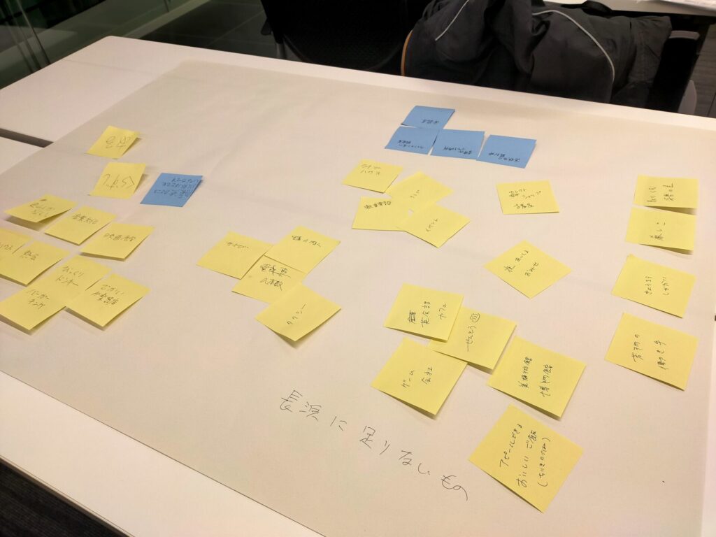 第2部では、グループワークを行いました。「なりたい自分」「長浜に足りないもの」「それは自分で超えられるハードルなのか」という3つのテーマについて、付箋を使いながら議論を深めていきました。